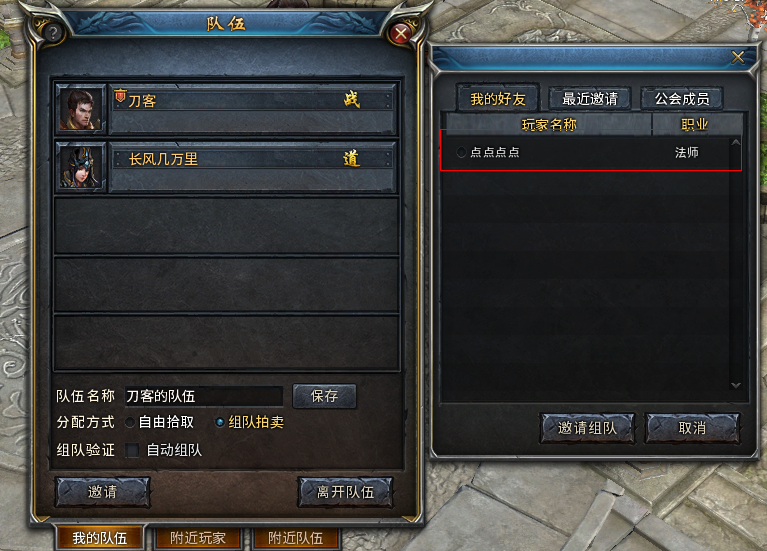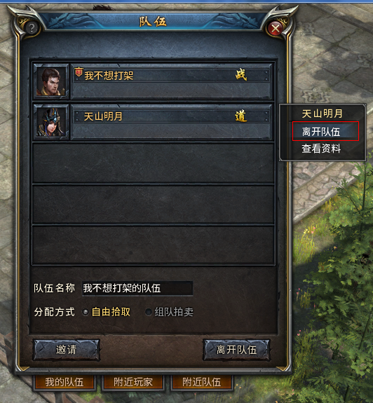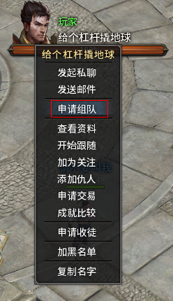 1) 鼠标选中对方头像,右击,在弹出的选项中选择“邀请组队”。对方在收到系统提醒通过申请后,就成功加入队伍了。