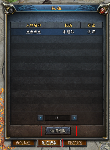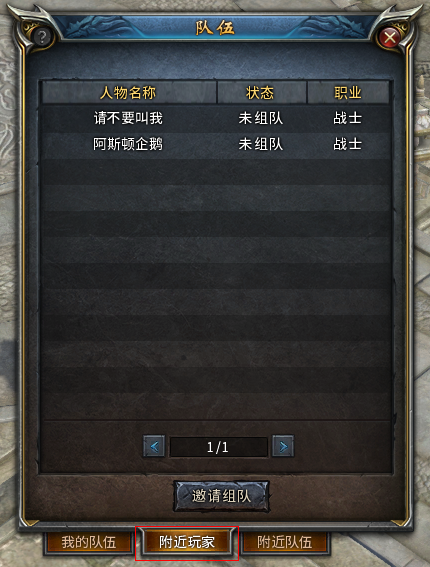 选择“附近玩家”标签,选择对应玩家,再点击下方的“邀请组队”按钮即可。