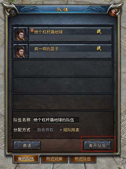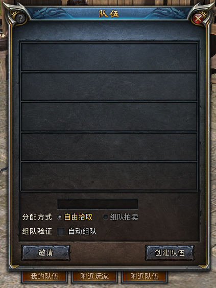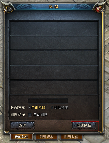 1、 点击组队界面下方“创建队伍”按钮,就可快速创建一个队伍。