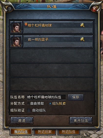 如组队打怪,获得稀有物品:就会出现拍卖提示。