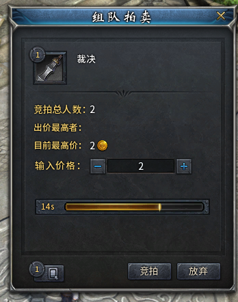 对拾取到的物品进行队里拍卖,价高者得。