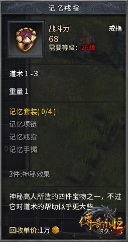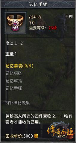 特殊属性:佩戴三件记忆套装时,在组队模式下,输入“@允许天地合一”这一指令后激活特殊属性,队长输入“@天地合一”即可将队友传送到身边。