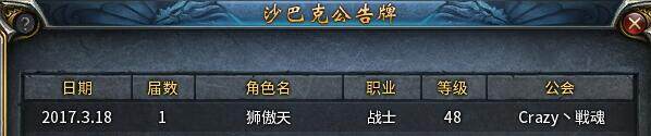 昨日,是《传奇永恒》四区(【倚天】、【屠龙】)、(【开天】、【玄天】)沙巴克攻城战的满月之日。2017年3月18日起到2017年4月17日首月沙巴克争霸战期间