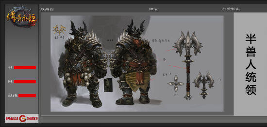 《传奇永恒》中比奇一战,沃玛教主战败逃走。他手下来不及逃跑的半兽人战士们,便分散隐匿在城外森林、山谷里,靠打劫行人为生。他们往往高达数丈,孔武有力,全身被厚实的铁甲包围着。按照半兽人的习俗,将自己的战利品——**骷髅系在腰间,骷髅头的多少代表着半兽人统领在族中的地位。当你在野外遇到这样凶残的怪物时,千万不要掉以轻心。