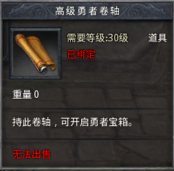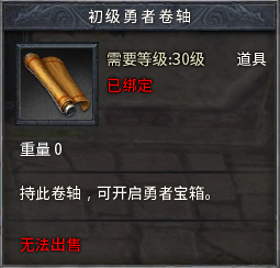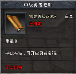 使用初级勇者卷轴开启宝箱,必得20000经验、强效金创药、强效魔法药等。