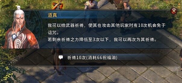 3.祈祷需要消耗66瓶祝福油,使装备的武器获得10次 祈祷次数。