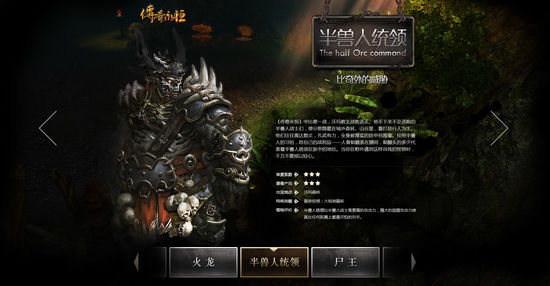 《传奇永恒》中比奇一战,沃玛教主战败逃走。他手下来不及逃跑的半兽人战士们,便分散隐匿在城外森林、山谷里,靠打劫行人为生。他们往往高达数丈,孔武有力,全身被厚实的铁甲包围着。按照半兽人的习俗,将自己的战利品——**骷髅系在腰间,骷髅头的多少代表着半兽人统领在族中的地位。当你在野外遇到这样凶残的怪物时,千万不要掉以轻心。