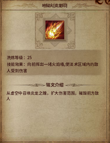 地狱火炎龙印:扩大伤害范围,在没火墙的情况下,地狱火在前期也是很好用的。
