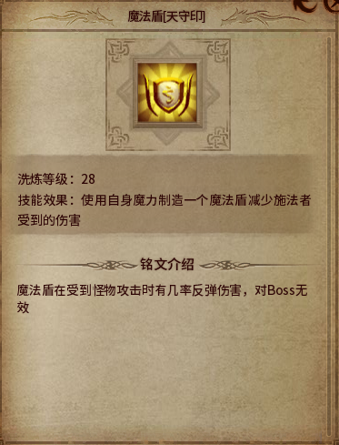 魔法盾天守印:反弹伤害,不过法师应该不太容易被怪物打到。