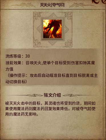 灭天火夺气印:降低魔法药的回复效果。