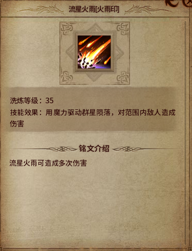 流星火雨火雨印:造成多次伤害,是多少次伤害呢,具体数值欢迎小伙伴们留言哈。
