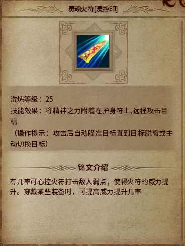 介绍:有几率提高火符威力,估计穿戴心灵手镯可提高几率。