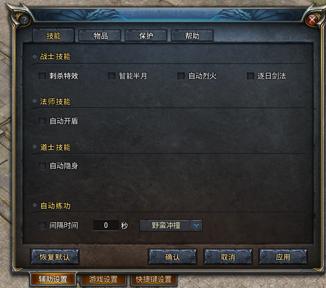 这是该系统的技能设定界面,简单明了,一目了然。无论是战士还是法师,亦或者是道士,都能在这里找到适合自己的打怪方式。如: