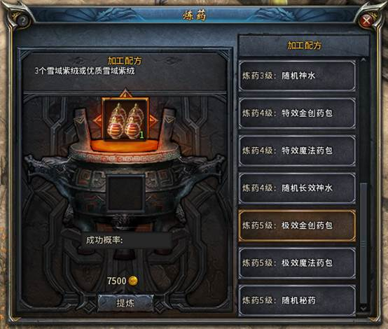 以炼药为例,技能等级上去之后会解锁更多炼药配方,五级配方产出的极效金创药和魔法药恢复效果一流,这也是上文提到的,大家在药品方面完全可以实现自给自足。同理锻石方面,只要把等级提上去,产出提升防御&魔防的护甲片,助力练级所向披靡~!