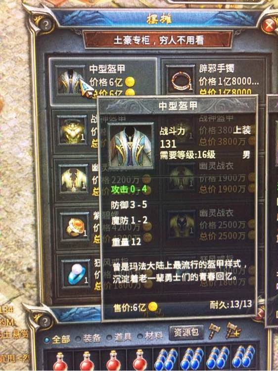镇天区功4的衣服能值多少钱?